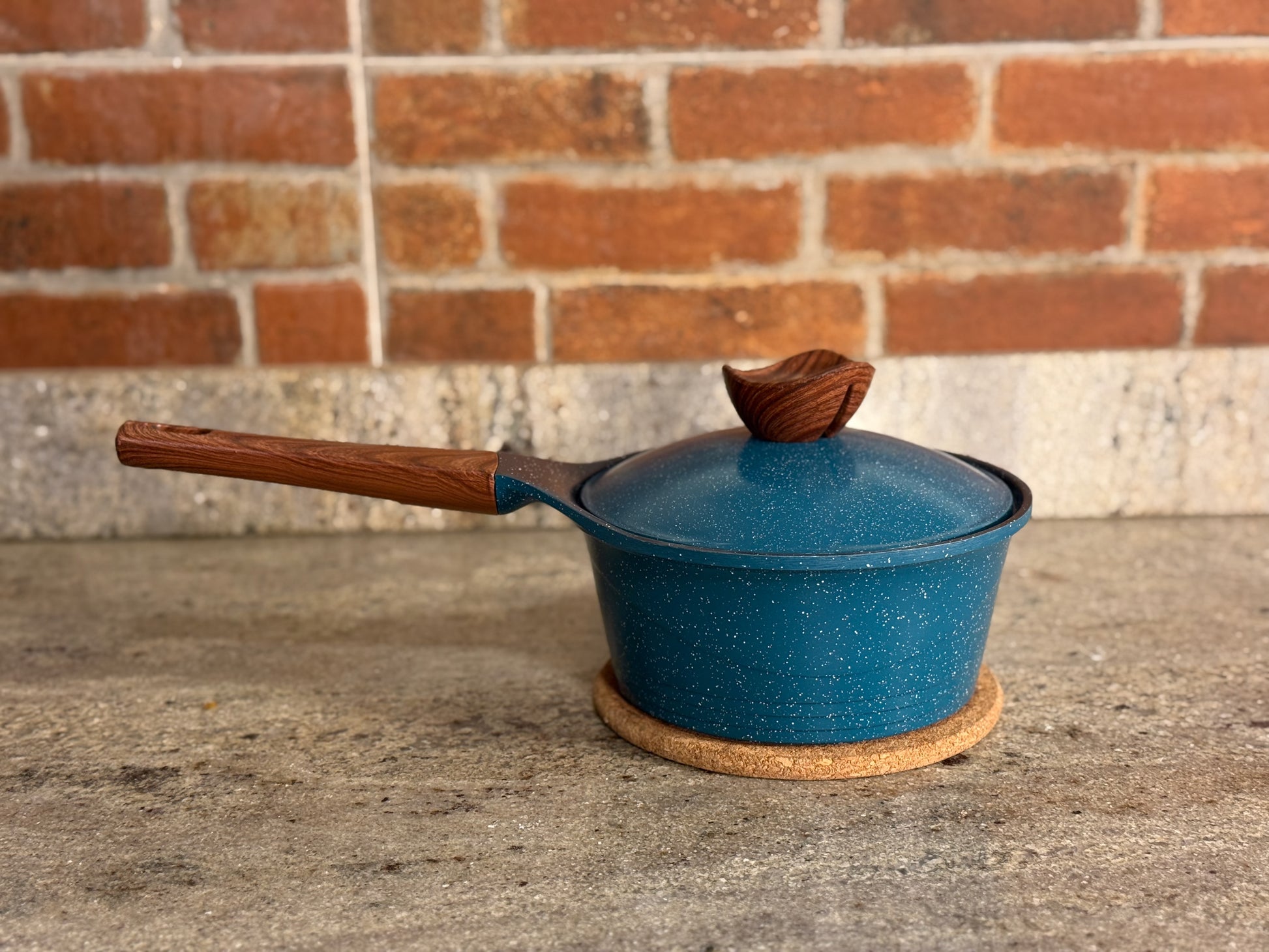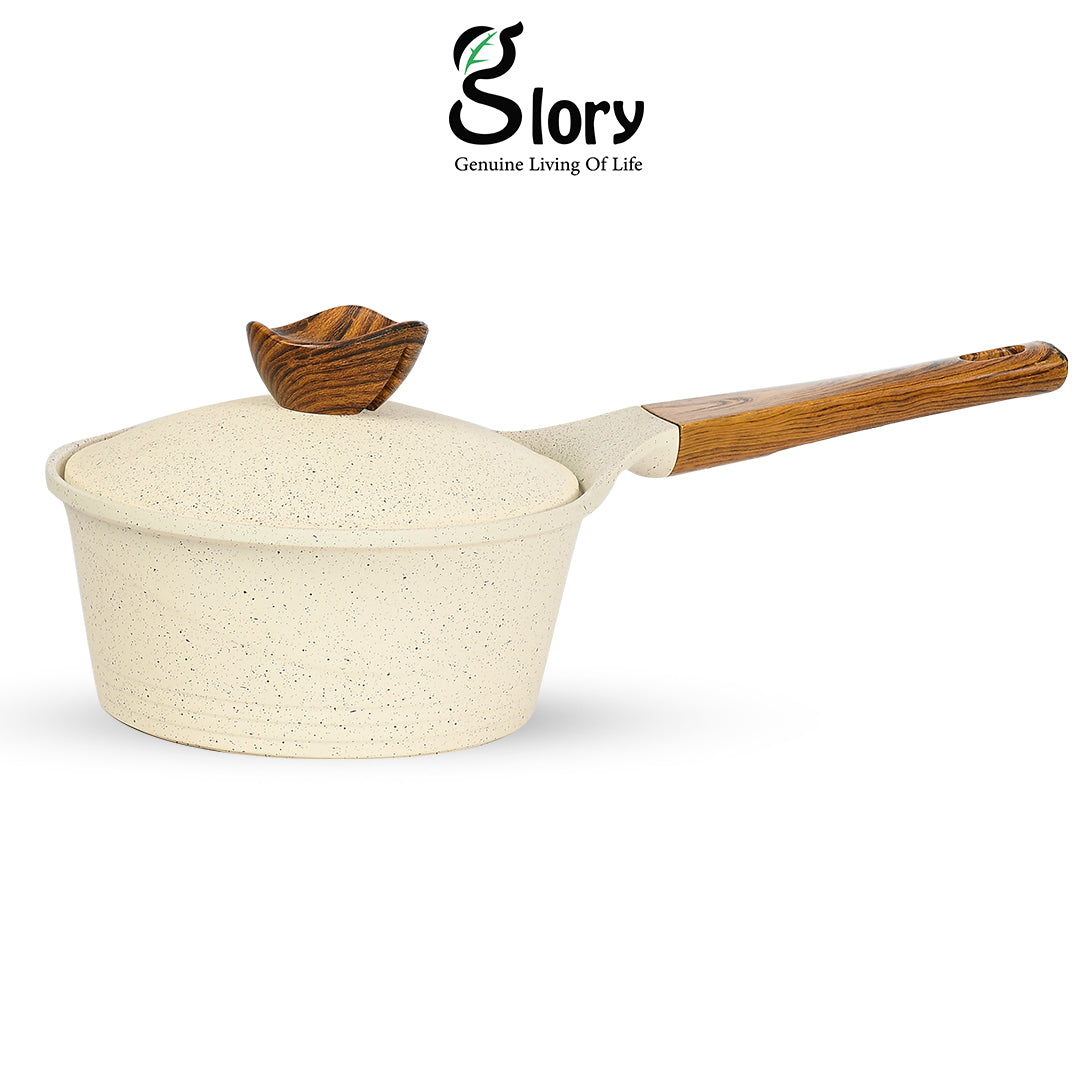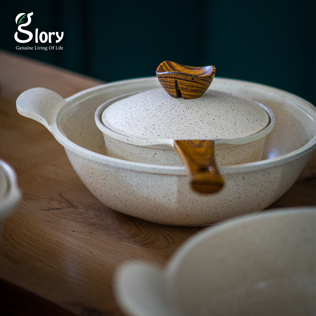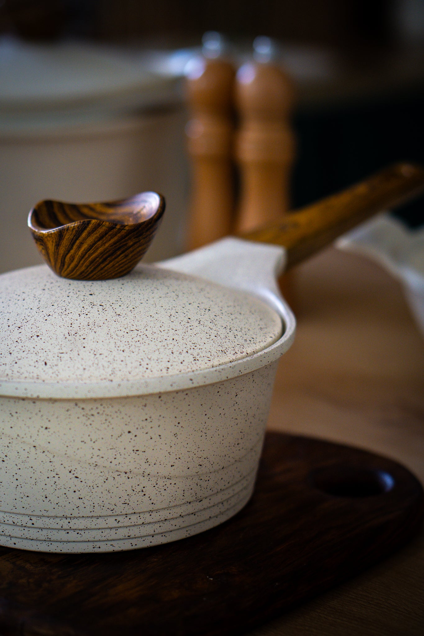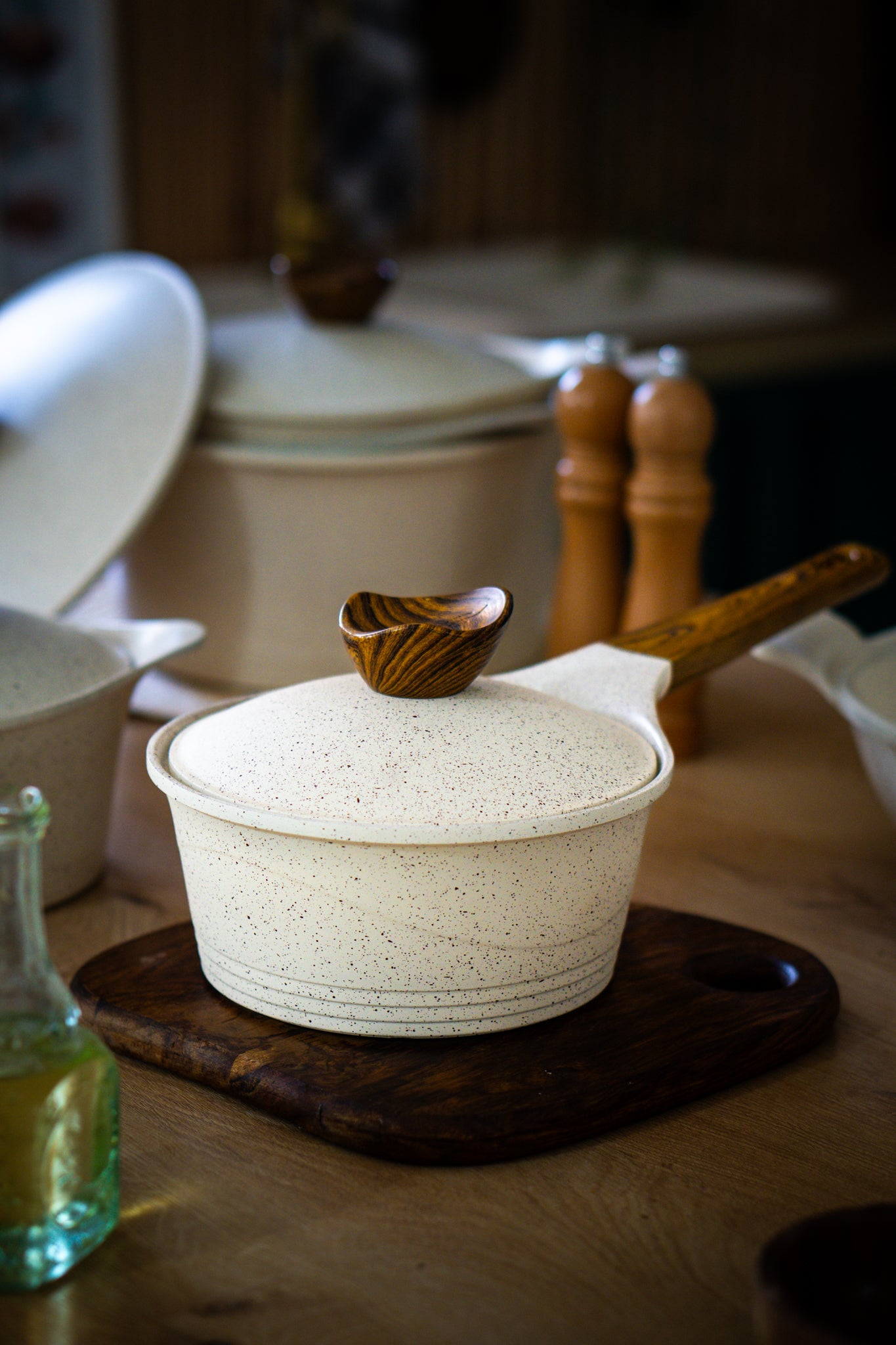 كسرولة جرانيت غير لاصقة، المصممة لتوزيع الحرارة بالتساوي لطهي متكامل بدون التصاق. مثالية لتحضير الصلصات، الحساء، والأطعمة الصحية بكل راحة وسهولة.