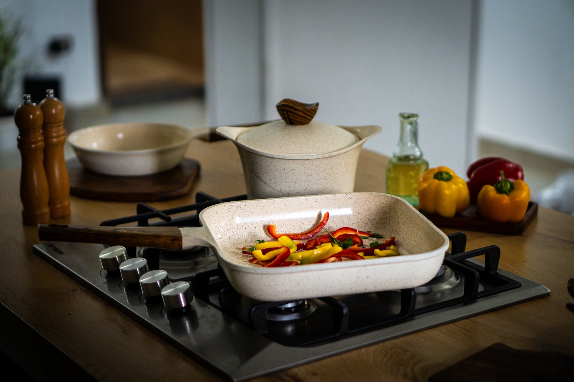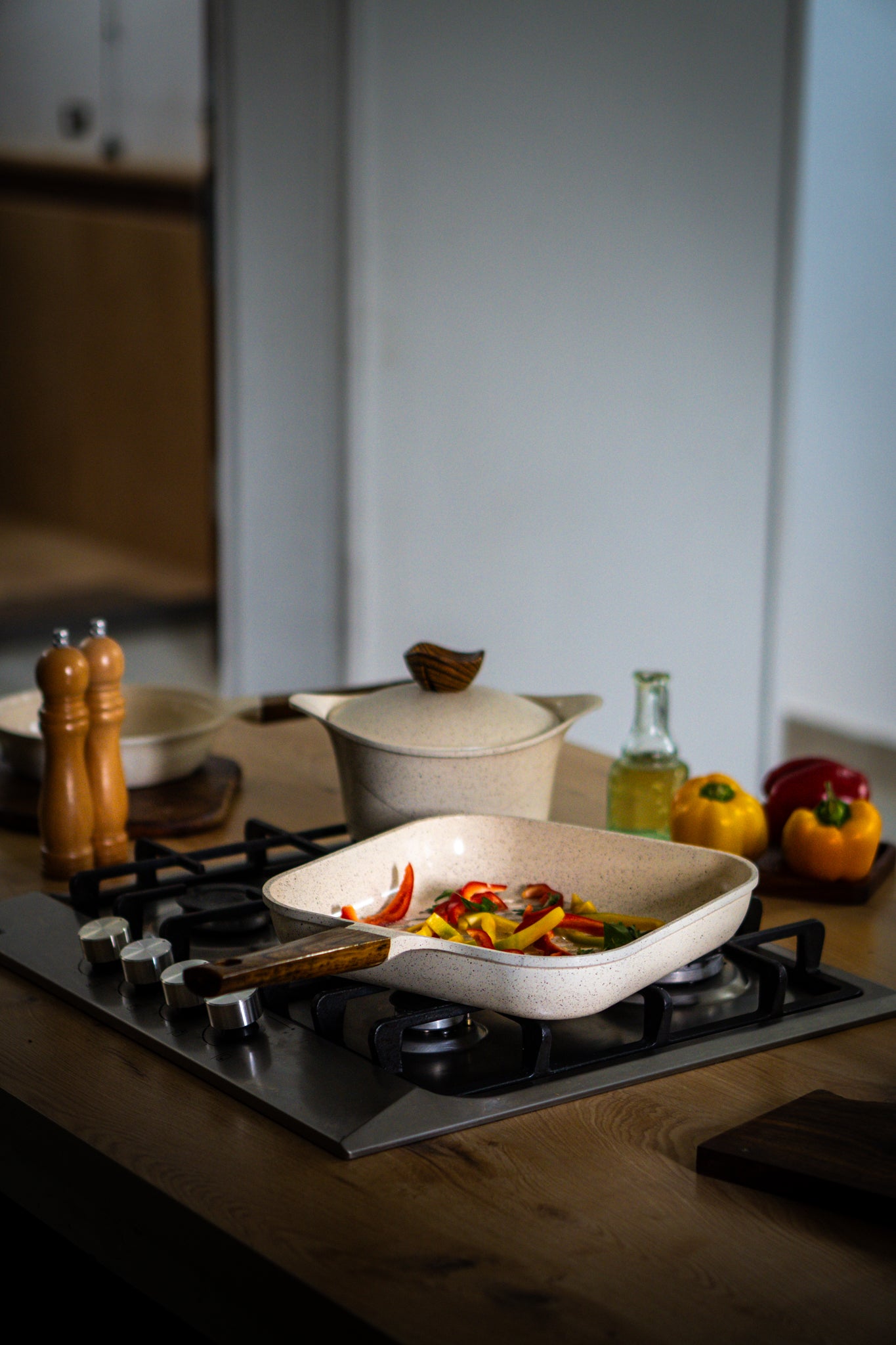 جريل جرانيت غير لاصق، المصمم لتوزيع الحرارة بالتساوي والحصول على طعام لذيذ بملمس مشوي رائع. مصنوع من مواد عالية الجودة، مقاوم للخدش وسهل التنظيف، مما يجعله الخيار الأمثل لمحبي الطهي الصحي.